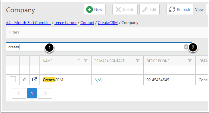 - Global Search This searchs all the fields and is easy access. This search will disappear on the mobile. This search is great for search other table, like a contact. With the drop down menu