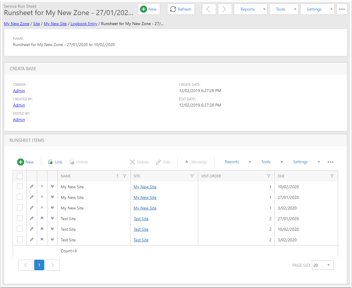 The Run Sheet is created. You will be automatically navigated to the created Run Sheet.