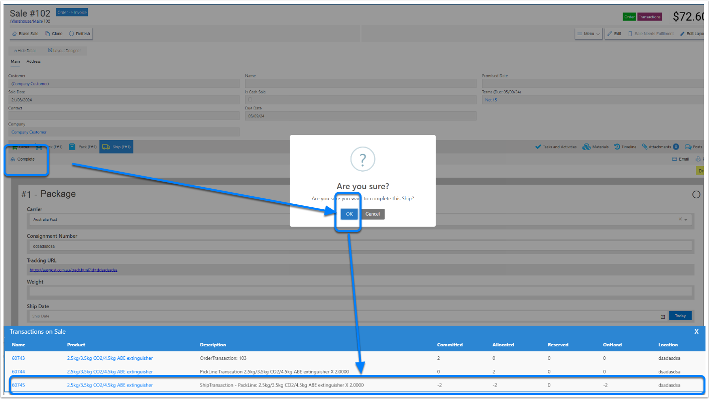 3. Removes Amounts for (onHans, Allocated, Committed) (Shipping)
