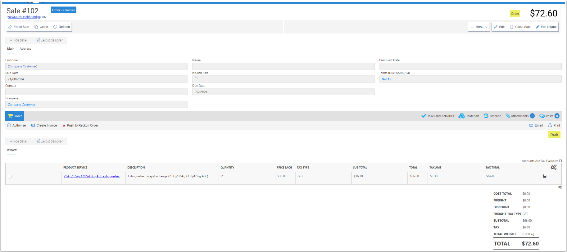 When Creating a Sales Order , the sales order starts on draft. this will not create a Transaction
