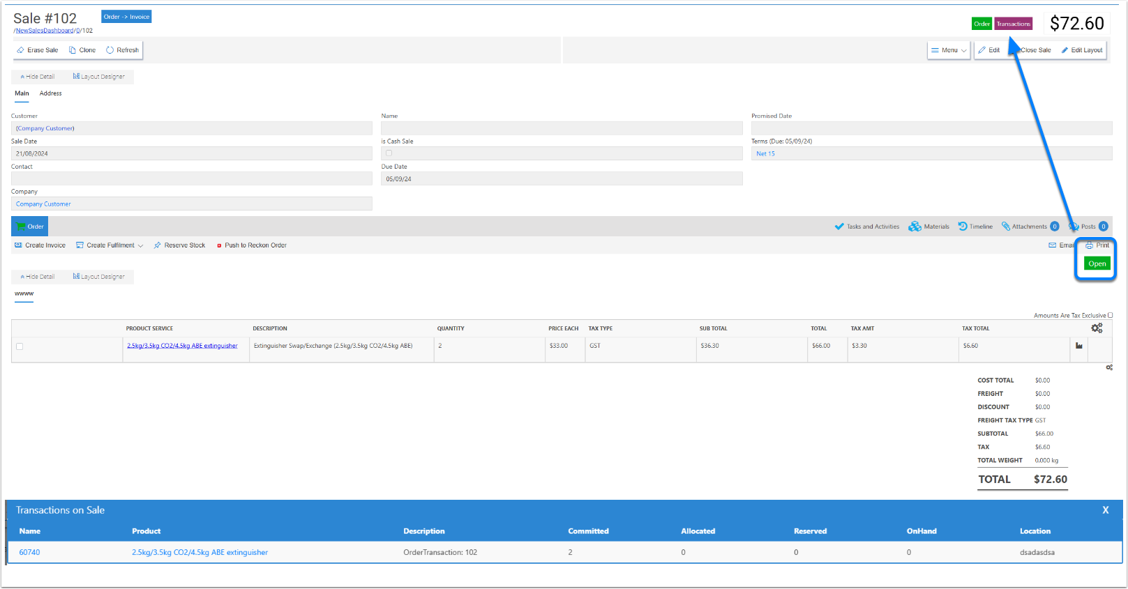 When you convert the Sales Order to a be Open it will create a Tranaction, in this example it will create you can see below, it creates a transaction that is Committed.